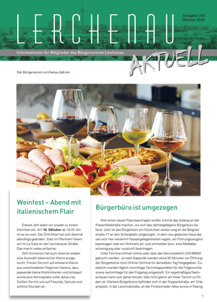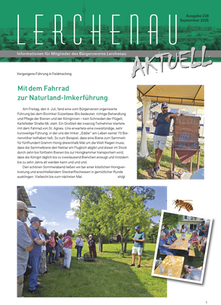 222. Ausgabe der Lerchenau Aktuell +++ Einladung zur ordentlichen Mitgliederversammlung +++ Mehr Bäume für München +++ Lerchennest e.V. bittet um Hilfe! +++ Neues Halteverbot +++ Terminkalender