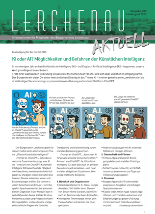 KI oder AI? Möglichkeiten und Gefahren der Künstlichen Intelligenz +++ Alles über Bienen +++ Passwort, Passwort und nochmals Passwort +++ Brand an der Detmoldstraße +++ Stadtteilspaziergang – vom Dorf zur Großstadt +++ Sommer im Virginia-Depot